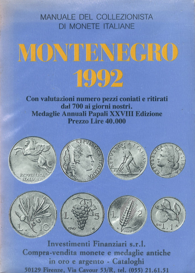 Manuale del collezionista di monete italiane Montenegro 1992